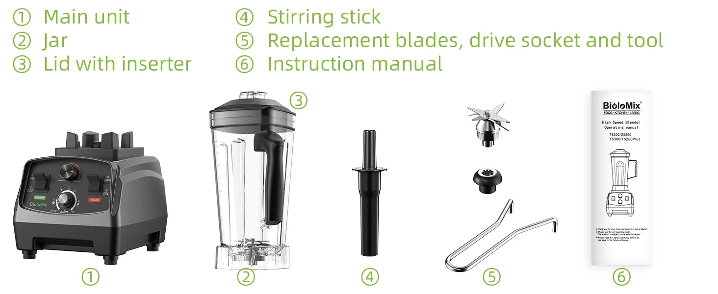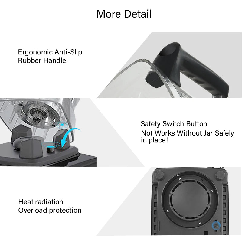 Powerful 3HP 2200W Motor – Crushes ice, nuts, and hard ingredients with commercial-grade strength.